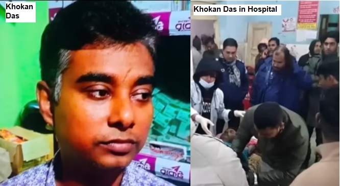 On Wednesday, December 31, 2025, about 50 year old Hindu businessman Khokan Chandra Das was returning home on autorickshaw at around 10 PM. A group of men attacked him with sharp weapons. They robbed him of the cash he was carrying with him and stabbed him with sharp weapons severely injuring him. The attackers then poured petroleum on him and set him alive on fire. Victim Khokan managed to jump into the nearby roadside pond out of his desperate effort to stay alive.